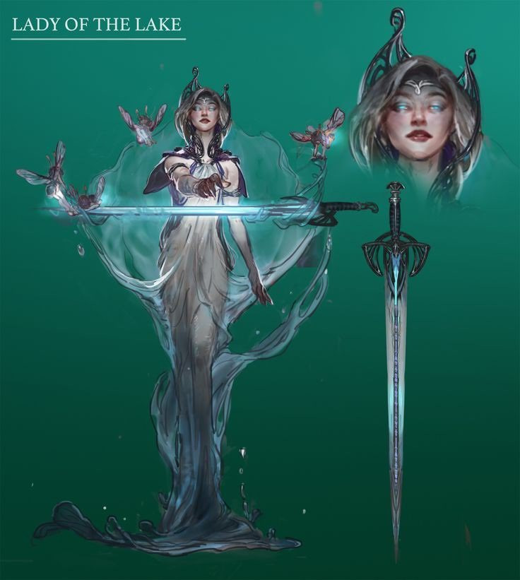 After a few minutes, the water starts bubbling, before a tall and thin form bursts out of the water. Water bubbles up and surrounds her, tiny Sprites holding it up like a dress. The Azure Knight looks down at Russ'Ruk, while Marsyas bows his head in respect. When she speaks, it is with a soft, floaty voice.