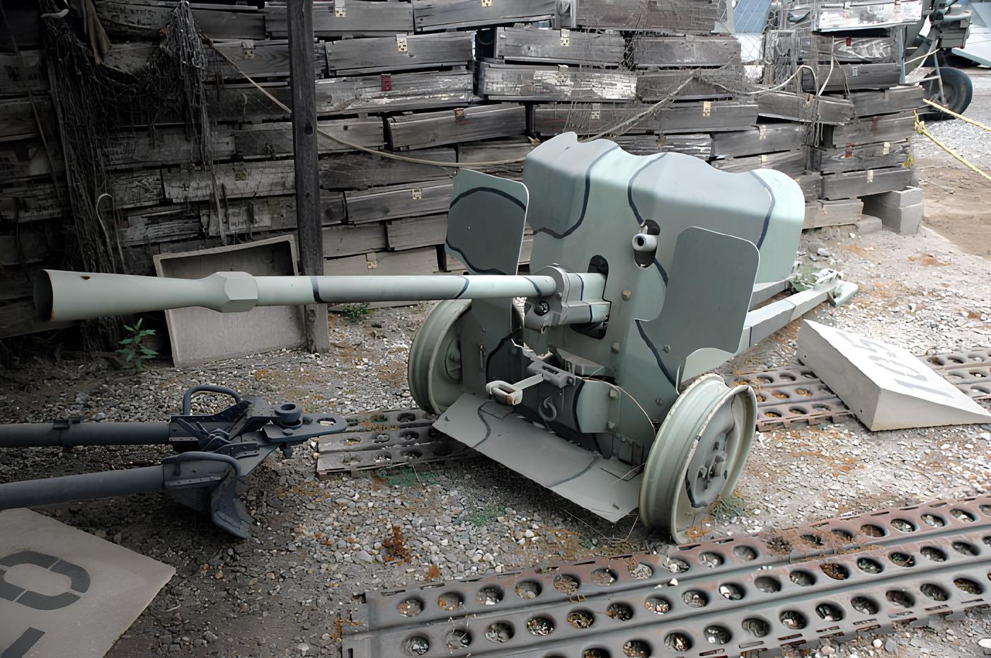 The Canon de 25mm SA modele 1934, better known for its manufacturer as the Hotchkiss 25mm anti-tank gun, is a French anti-tank gun designed before WW2. It made up the vast majority of France's anti-tank arsenal at the outbreak of the war. Its small size made it inadequate against Germany's latest models of Panzer III and IV, though it was still a capable and extremely light weapon. As the war progressed it became entirely obsolete, and the French Red Army began mounting it on halftrack troop carriers to fight trucks, bunkers and other mechanised transports.