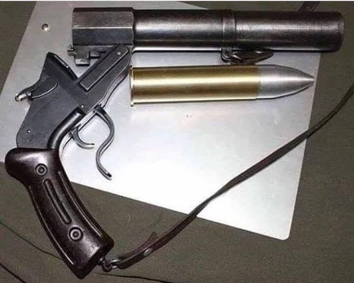 The North Australian Inc. Handcannon is a single-shoot, breech-loaded pistol which fires the 25x163mm anti-air round used by the WW2 era Japanese Type 96. Its action can... probably resist the pressure, seeing as it's almost wholly bluemetal, titanium and tungsten alloy. On the other hand, the shooter's meaty hand has far greater concerns than if the action can hold through, primarily its integrity.
