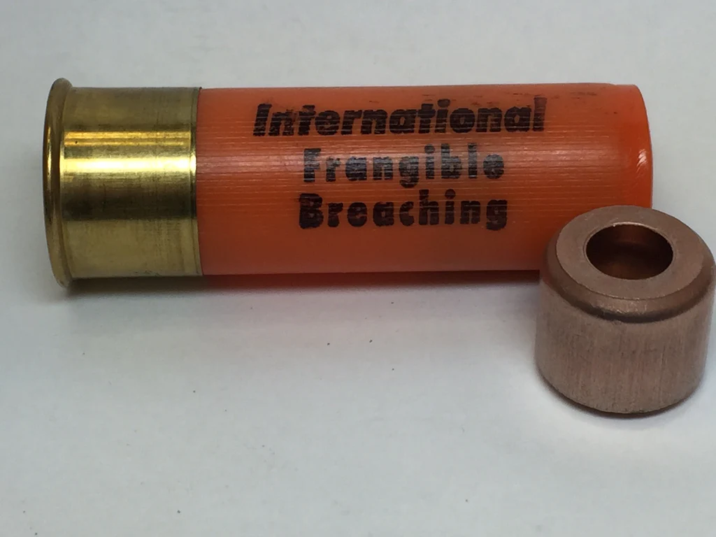 Breaching rounds are solid slugs made of a frangible material which, upon impact, will disperse into a cloud of dust. These munitions are useful for entering locked doors without damaging anything on the other side, and as such, have become a favourite of police hostage rescue teams around the world.