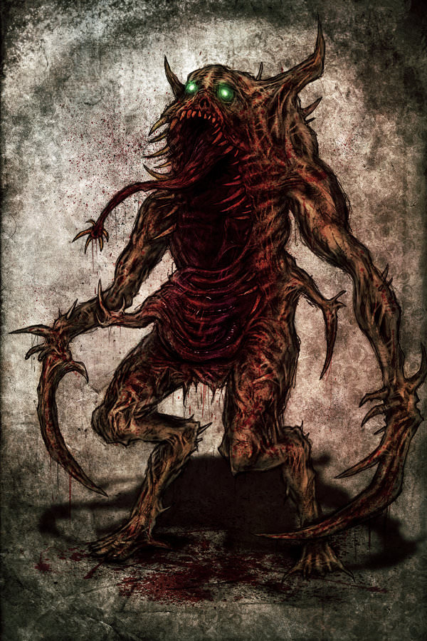 Imps whose psychic gate becomes unstable may see too many otherworldly entities entering their body. As a result, the physical vessel will no longer be able to contain so many beings within it, and they will make their home grow forcefully. Demonoids can reach a height of 4 metres. Their body is filled with festering open wounds spiky protrusions, fluids endlessly oozing from their impossibly shaped muscles. Most psychics regard demonoids as a pest, as they are useless for manual labour, but they do make formidable soldiers if the caster can manage to persuade them back into their service.