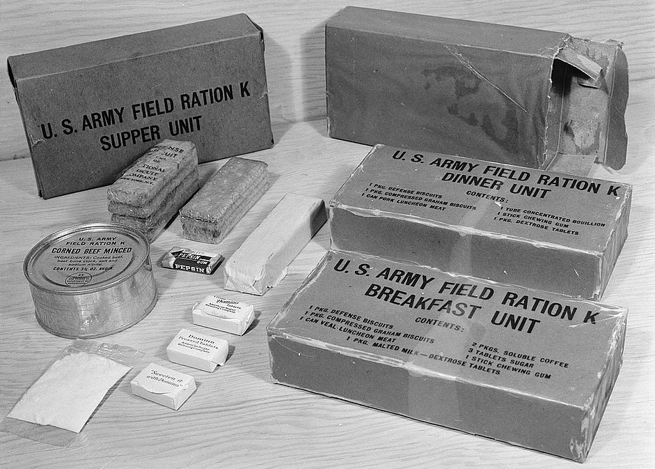 The K ration is an American emergency Meal Ready to Eat (MRE) from World War II that was produced en masse for use and export. It is barely tolerable and not exactly fulfilling for a day of intense fighting, but will keep a person alive when facing starvation. The US quickly lost interest in the K ration after WW2, well after hundreds of millions had already been produced. A large part of this huge surplus has landed in Oceanyka, and many companies still manufacture them.