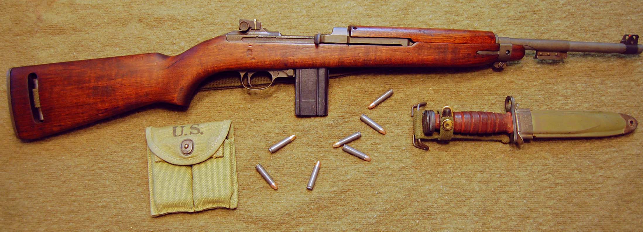 The M1 Carbine is an American semi-automatic rifle that fires .30 Carbine ammunition from a 15-round or 30-round detachable box magazine. It is gas-operated and has a short-stroke piston, usually fit with a steel receiver, wooden stock and handguard, and a rear peep sight. M1 Carbines are designed to be lightweight and compact, the perfect weapon for support troops and rear-echelon personnel. It was widely used by the U.S. military in World War II, the Korean War and even the contemporary Vietnam War. Because of its light weight and small size, many Oceanykans prefer carrying this weapon to a larger rifle in places such as cities, jungles and caves where longer and more cumbersome alternatives may prove detrimental.
