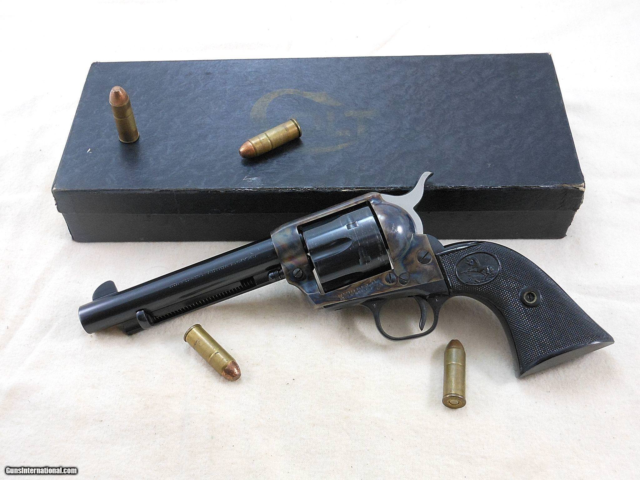 The Colt Single Action Army is (unsurprisingly) a single-action revolver that can fire six rounds of various calibres, such as .45 Colt, .44-40 Winchester, or .357 Magnum. It was designed by Colt’s Patent Firearms Manufacturing Company for the U.S. government service revolver trials of 1872 and was adopted as the standard-issue pistol of the U.S. Army from 1873 until 1892. The handgun has a metallic cartridge system, a flat leaf spring mechanism, and a half-cocked position for loading and unloading. It comes in different barrel lengths, from 4 + 3⁄4 inches to 7 + 1⁄2 inches, and has a blued or nickel-plated finish. The Colt Single Action Army is also known as the Peacemaker or the M1873 and is a iconic symbol of the American Wild West era, used by ranchers, lawmen, and outlaws alike.