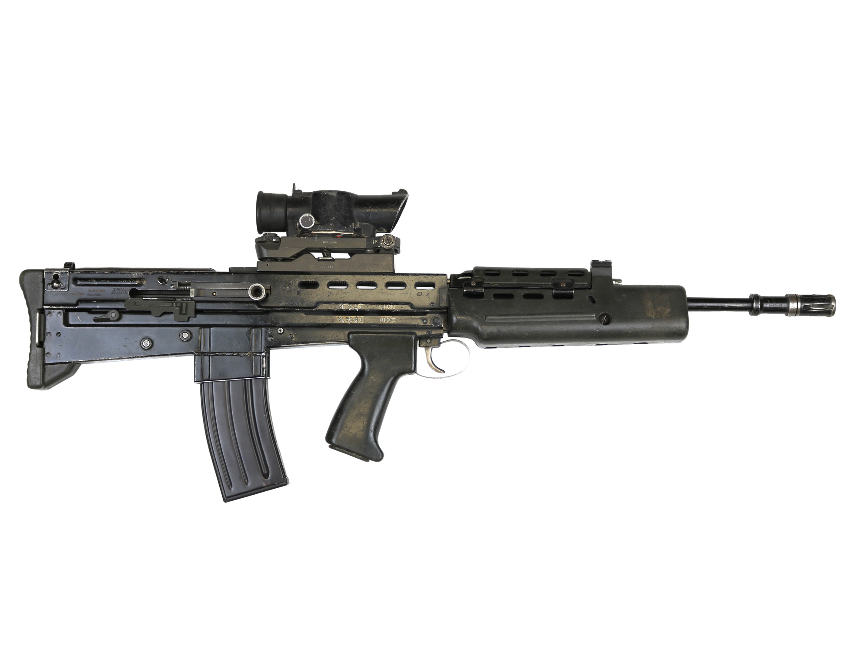 The XL-70 Individual Weapon is an experimental British assault rifle developed by the Royal Small Arms Factory in Enfield. It is chambered in .223 Remington, an intermediate cartridge also used in the battle-tested M16 American service rifle, and which would later be standardised as the 5.56x45mm NATO. This rifle has a bullpup layout, a gas-operated rotating bolt action, and is normally issued with 30-round AR-15 type magazines, which would later become the almost universally compatible STANAG magazines. XL-70 prototypes are extremely hard to come by, and only sometimes issued to elite troops such as the Special Air Service.