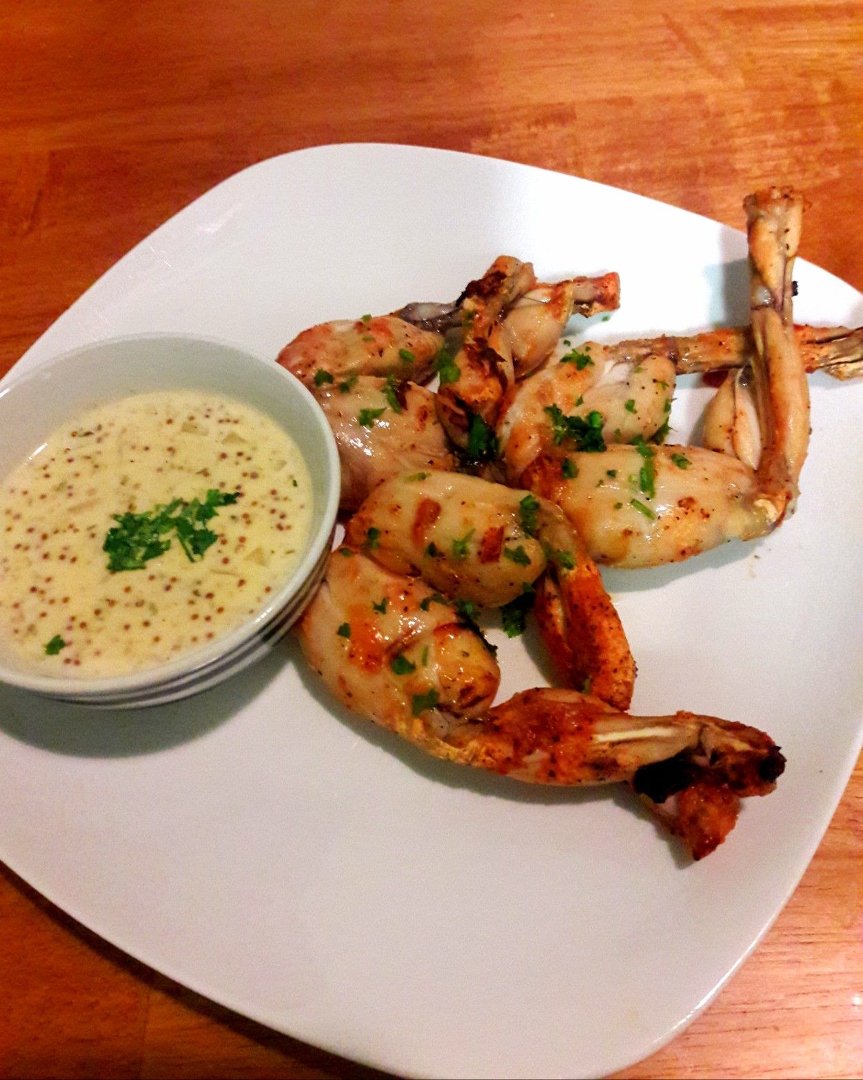 Frog legs are a culinary delicacy that are popular in many parts of the world. In Oceanyka this usually refers to the legs of the Pobblebonk Frog. They are usually prepared by frying, baking, or grilling, and are often served with a variety of sauces, herbs, or spices. Franco-Oceanykans, particularly the Montagnards and inhabitants of the Federal Subregion of New Caledonia, see pobblebonk legs as an important part of their cultural heritage and, unsurprisingly, can cook them very well.