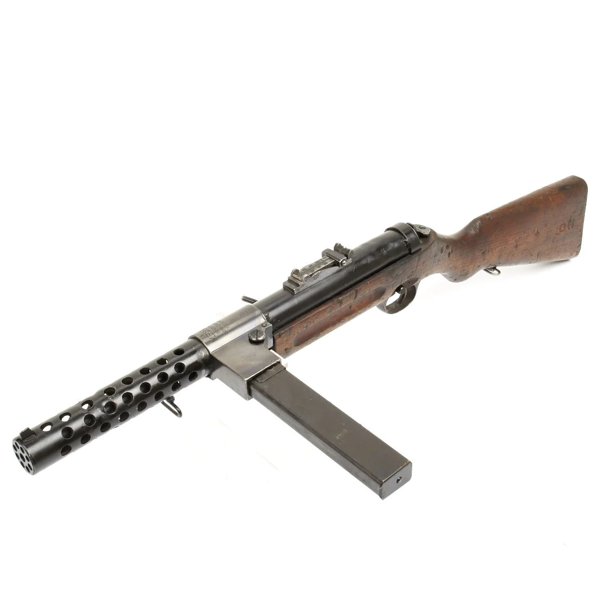 The MP 28/II is a German submachinegun chambered for a wide variety of calibres, though it is most often found in 9x19mm Parabellum. It is essentially an improved version of the MP 18, designed almost a decade later as an export gun for the international arms market (though it was purchased in large quantities by the German government itself). The MP 28/II includes a fire selector and a bayonet mount. Additionally, instead of the somewhat unreliable Luger P08 32-round snail magazines issued with the MP 18, this model uses conventional 20, 30 and 32-round box magazines. MP 28s are actually easier to find today than their predecessors owing to their commercial success.