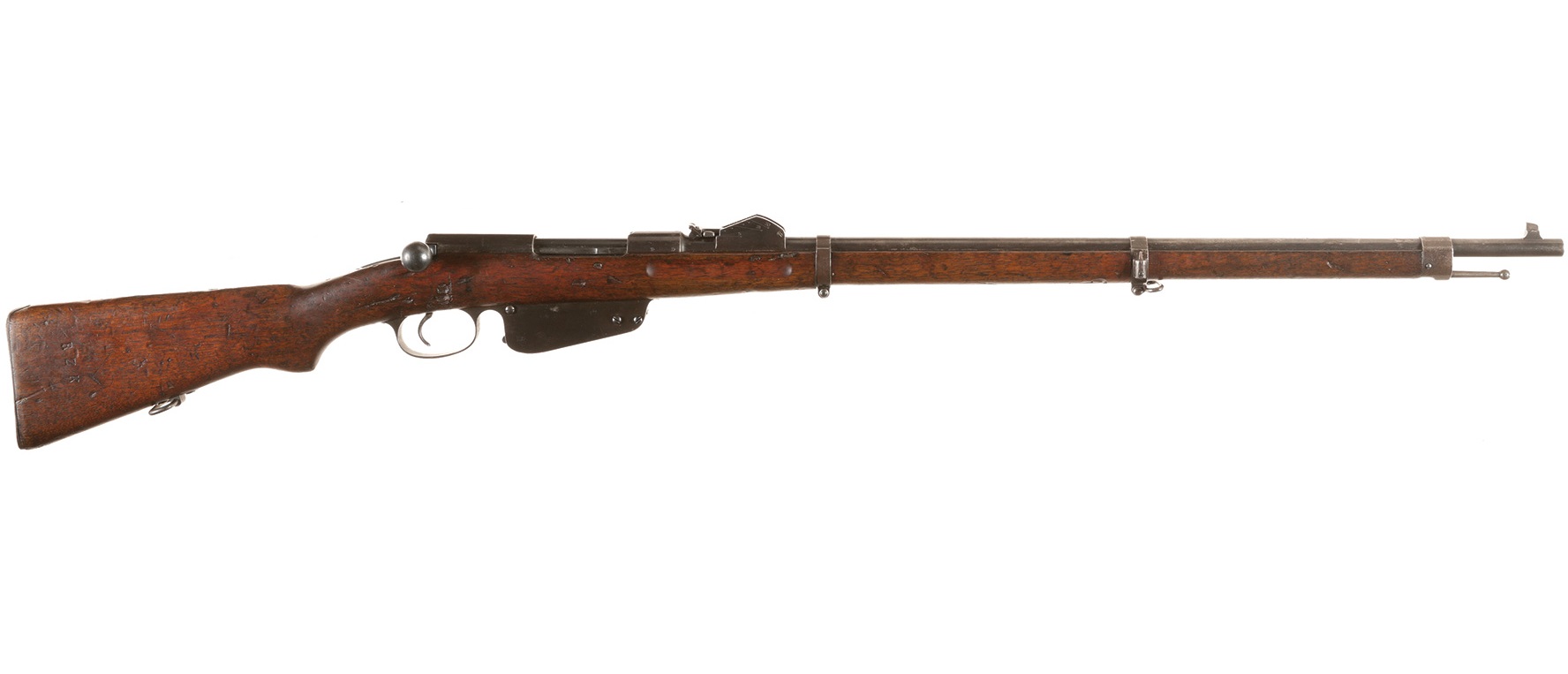 The Mannlicher M1888 is an Austrian bolt-action rifle designed by Ferdinand Mannlicher, chambered in 8x50mmR Mannlicher which is fed from a 5-round fixed magazine. This rifle was the standard-issue infantry weapon of the Austro-Hungarian Empire in the late Victorian Era. It operates on a straight-pull principle and uses en-bloc clips to reload. Despite its renowned use in Austro-Hungary, the M1888 was a commercial success and saw fighting all across the globe.