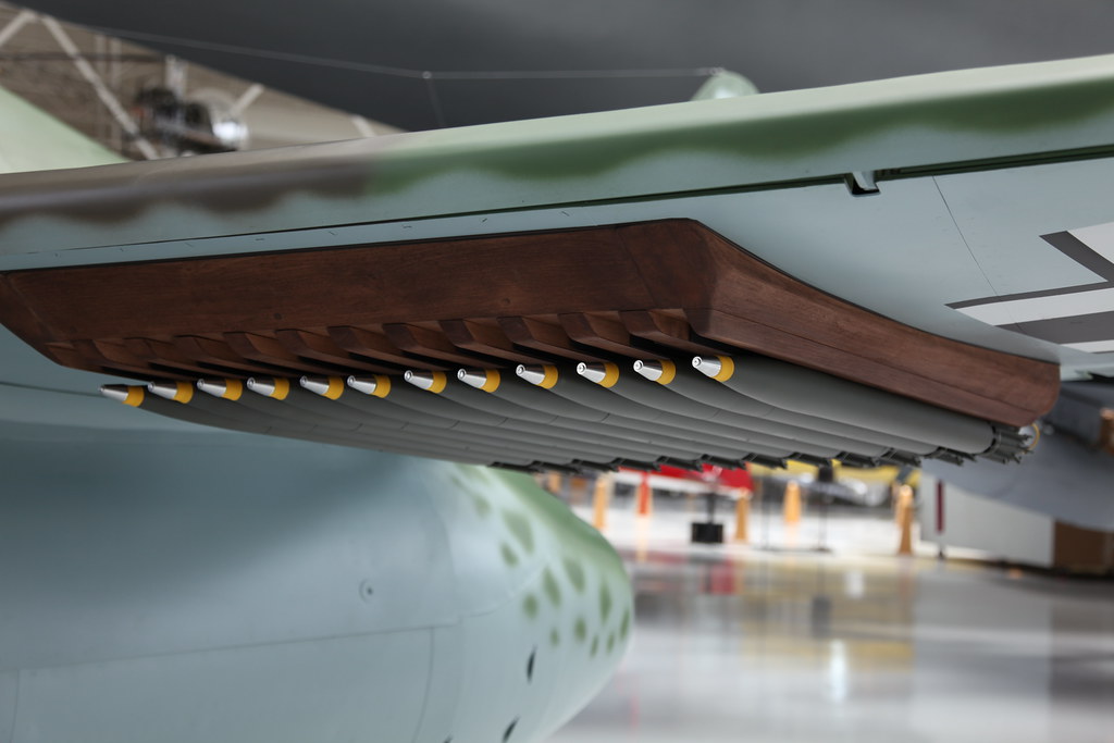 The R4M (Rakete, 4 Kilogramm, Minenkopf) is a German air-to-air rocket used by the Luftwaffe during the Second Weltkrieg. Its original warhead is thin-walled much like the HEHC Shells employed by Germany at the time, containing 520g of explosives. The main Luftwaffe fighter to arm itself with these was the Messerschmitt Me 262 and its later variants. While the original design had some serious limitations, once VT (proximity) fuse technology was exported to Germany by Great Britain, the final iterations of the R4M became devastating weapons which could bring down whole Soviet bomber squadrons with a few well-placed volleys, though this variant used a conventional HE-Frag casing with less explosive power. Furthermore, the R4M was later found to have great utility against ground targets when employed en-masse, gaining a similar niche with German forces as the French SNEB Rocket.