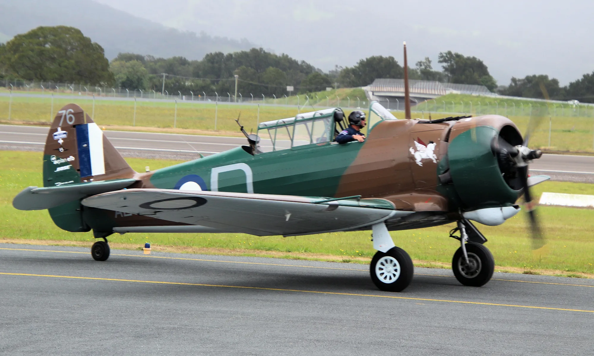 The CAC CA-16 Wirraway ("Challenge") is an Oceanykan dive bomber developed by the Commonwealth Aircraft Corporation, used extensively during the Oceanykan Civil War and World War II. It was introduced in the mid-1930s as a locally produced derivative of the North American NA-16, originally as an advanced trainer, but it soon proved to be a reliable platform and was pressed into a variety of roles including reconnaissance, ground attack, and light bombing. The Wirraway is mostly made up of a fabric-covered metal structure and powered by a Pratt & Whitney R-1340 Wasp radial engine, giving it a top speed of around 350 km/h. By default, it is armed with a pair of Vickers Machineguns and a single defensive Vickers K Machinegun in the rear, though it can also carry up to 750kg of ordnance. Its most widely produced version, the CA-16, includes a number of improvements such as dive brakes meant to help perform airstrikes. Wirraways continue to soar Oceanyka's to this day, both in private hands and as trainers for the OPA Air Force.