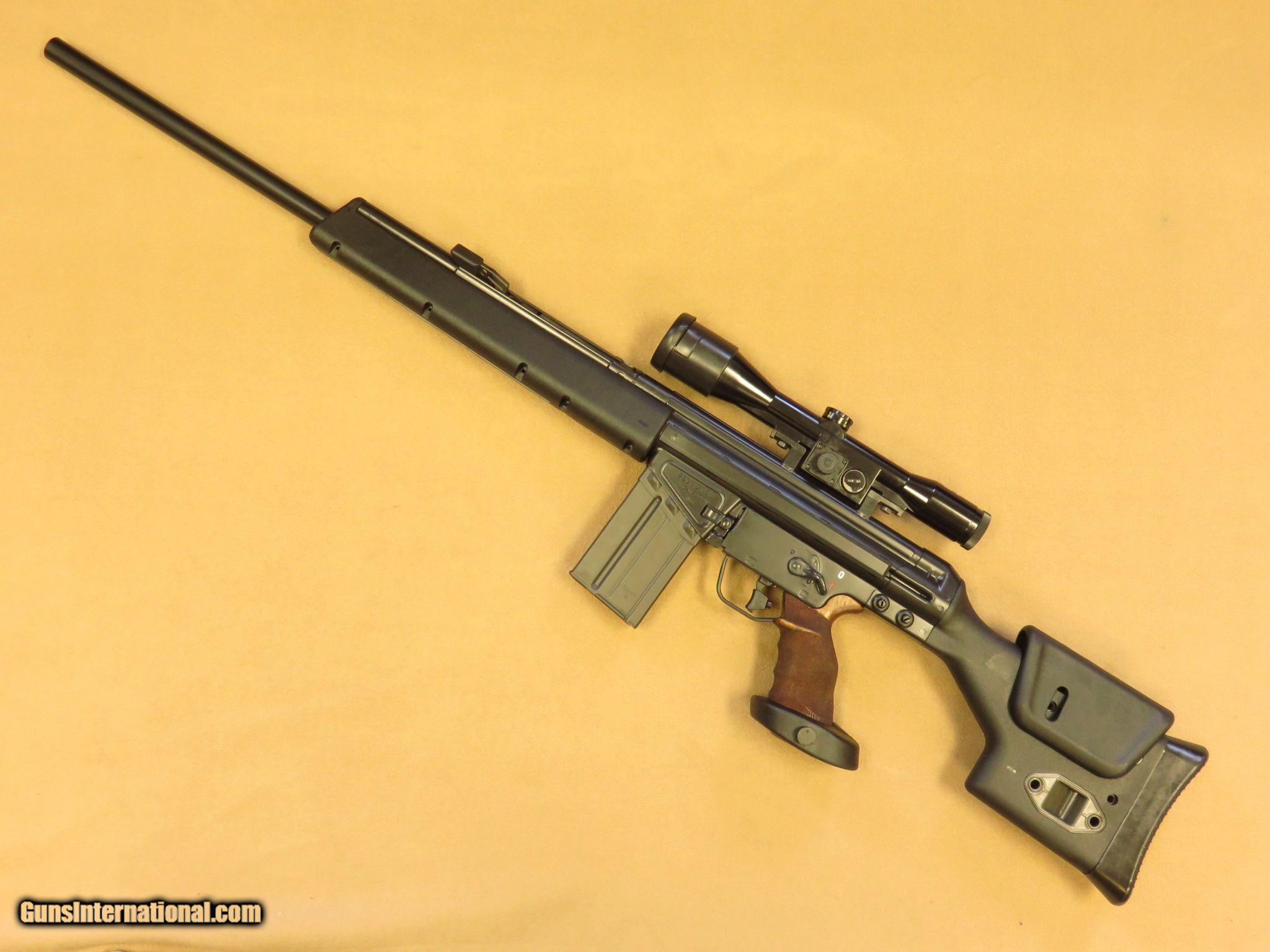 The Heckler & Koch PSG1 is a German sniper rifle that was introduced in the late 1960s to both arm the Deutsches Heer with a capable semi-automatic rifle and to provide police units such as the GSG-9 with fast, precise firepower, all-too important as the International War on Terror began in earnest. At its introduction, it was one of the very few high precision semi-automatic rifles. It features a free-floating octagonal barrel and a ZF 6x42 PSG1 telescopic sight. While it requires special care and cannot be handled as roughly as the G3 can, its capabilities are unmatched by anything in the rifle's family tree.