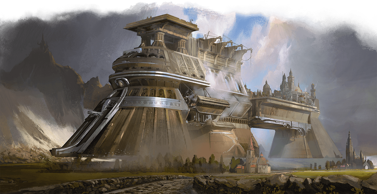 Once, the mighty forges of Sharn churned out new and amazing weapons of war. With the help of Cannith makers and other arcane crafters, the great forges crafted various types of warforged, powerful vehicles, and the wondrous moving cities. Of these latter creations, only two remain active to the current day. The most famous of these is Argonth, the mobile fortress.