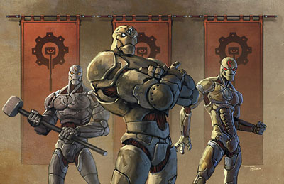 The approximately 170-member Iron Watch is based in Forgelight. Stone Guards serve in six-person squads commanded by a member of the Iron Guard. Squads are paired into platoons under the command of a Steel Guard. In addition to these ten standard platoons, Steeljack commands an elite platoon formed of members of the Steel and Iron Guards. The remaining members of the Watch focus on research and support. Warforged who can’t work on a team are quickly dismissed.