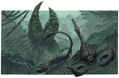 Never seen in the same place twice, the claw of Vulkoor is considered by many drow to be the greatest boon their god can bestow. Its appearance is always heralded by an eruption of the forest floor, from which swarms of scorpions rise. After them comes a great jade claw. The scorpions circle reverently around the mighty claw before fading from view.