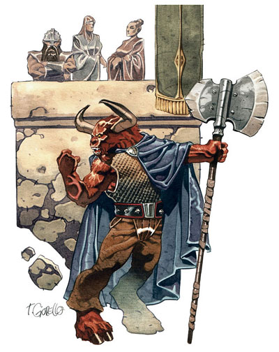 The minotaur champions the rights of nonhumanoid sentients as well. He maintains that these “monsters” are tortured for the entertainment of the viewing elite without receiving any consideration for their agony. His equitable treatment of races viewed as mere beasts or fodder by other stablemasters won several dangerous monsters to his stable and paved the way for his rise to power.