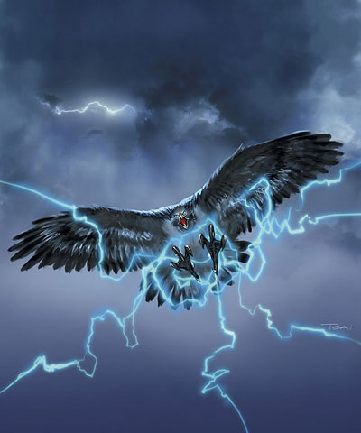 South of Stormreach, a mass of black clouds forms a permanent blot on the horizon, and dark wings cast long shadows on the forlorn earth. The sky demesne of Kraa’ark Lors is a wondrous citadel in the clouds, hovering atop thunderheads and swirling in dark mists. Also called the Roc King and Lord of the Black Clouds, Kraa’ark is a mighty roc awakened by powerful druid magic of long ago. The roc claims to be immortal, another trait granted to the magical beast by whatever magic awakened its mind.