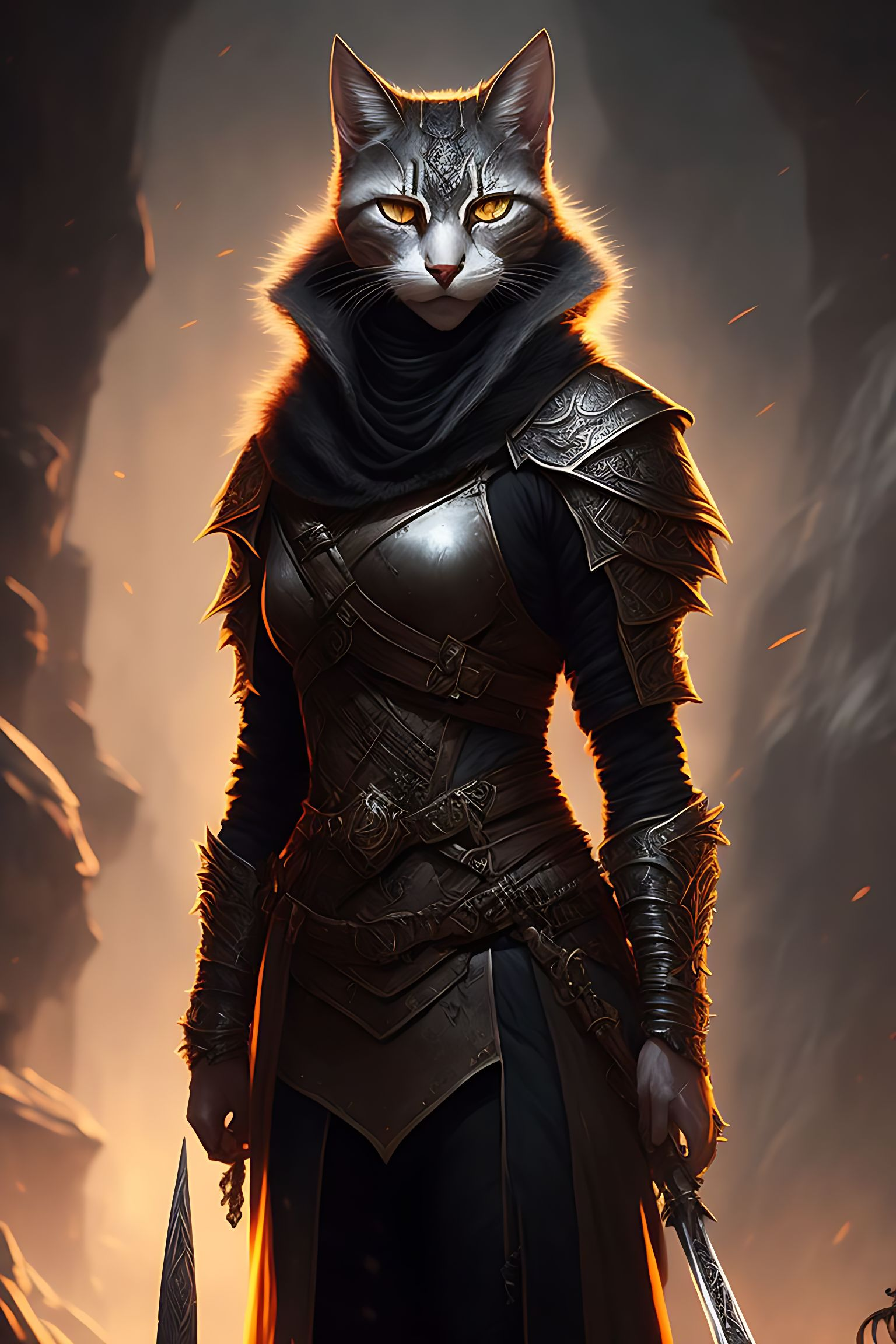 To stay on the move, and now seeks to leave her dark past behind and become a somewhat decent person. She yearns to use her skill to protect the innocent and make amends for the wrongs she committed in the name of the mafia. Night has become an enigmatic figure, a mysterious tabaxi wandering the continent, searching for redemption, and trying to find her place in a world filled with both darkness and light.
