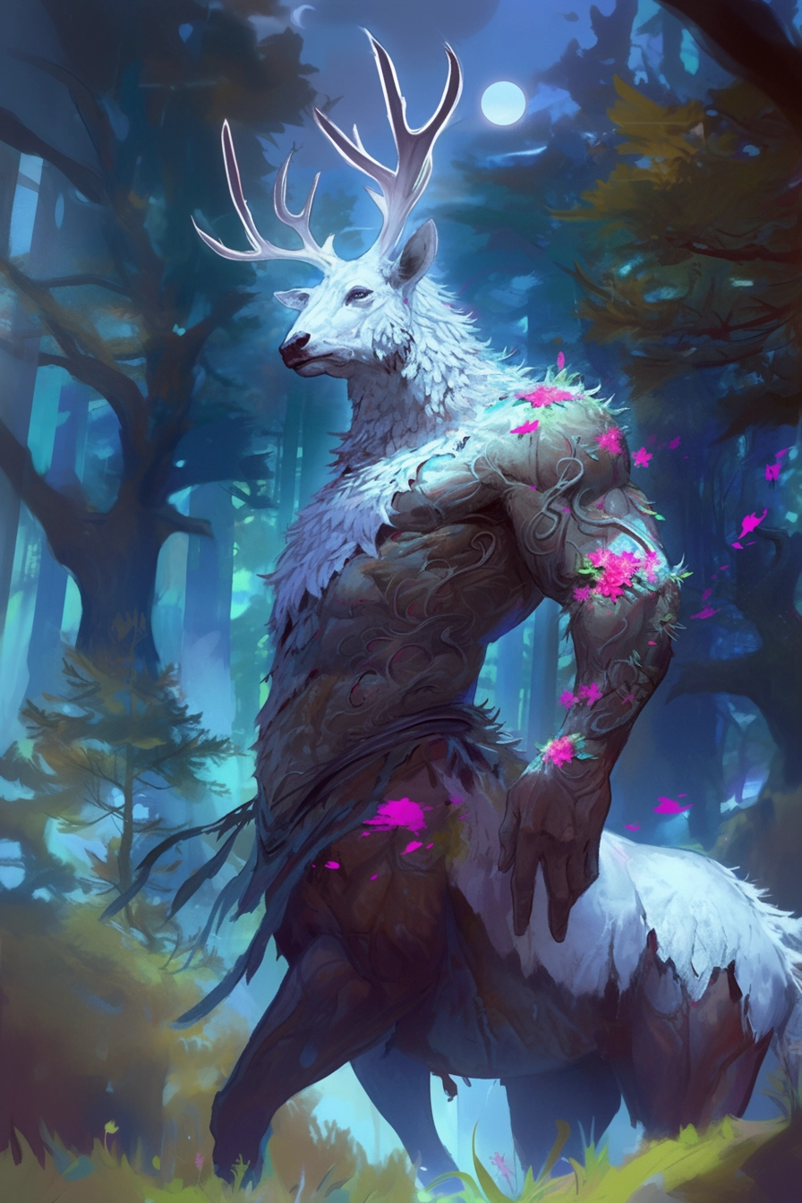 Elios, in the divine spectrum of Iozaria, emerges as the vibrant God of Life, a figure of renewal and vitality. His form is a majestic amalgamation of the wild, combining the sturdy lower body of an elk with the noble torso of a white stag, an embodiment of the untamed and nurturing aspects of nature. With a disposition that aligns with Chaotic Good, Elios epitomizes the spontaneous and benevolent force of life that courses through the realm.