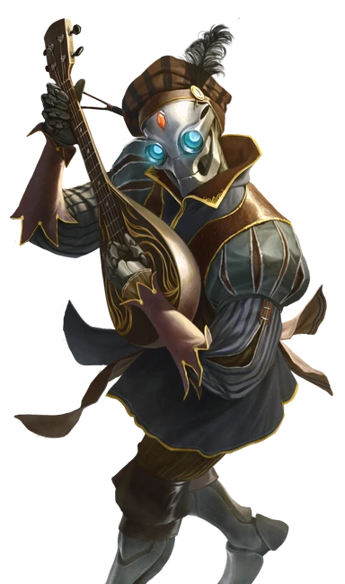 Clanks are sentient mechanical beings built from a variety of materials, including metal, wood, and stone. They can resemble humanoids, animals, or even inanimate objects. Like organic beings, their bodies come in a wide array of sizes. Because of their bespoke construction, many clanks have highly specialized physical configurations. Examples include clawed hands for grasping, wheels for movement, or built-in weaponry.
