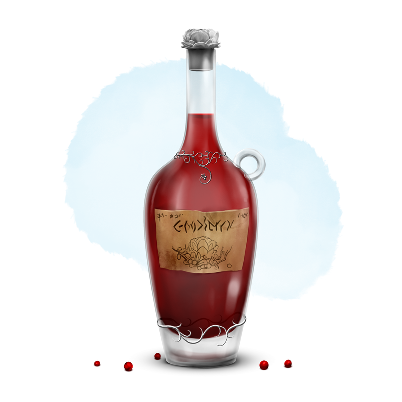 This bottle of thick red wine is miraculously made from magical goodberries and peonies using a closely kept family recipe. It tastes fruity and floral, with notes of honey and the feeling of a fresh breeze, and is deeply rejuvenating. The bottle comes with 8 servings of the syrupy potion, which each take 1 minute to drink.