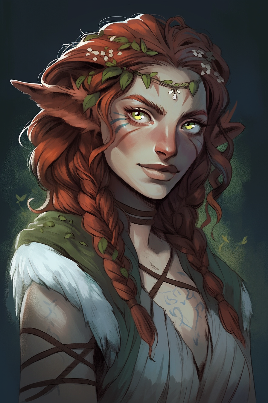 A devouted follower of Rootspeaker and mother of Sprig. Under the spell of Rootspeaker, she and all other women in the Grove of Eternal Whispers was taken as his brides. When Rootspeaker was killed she and all others in her community responded with grief, but the party was assured by Brónach that the effect would pass.