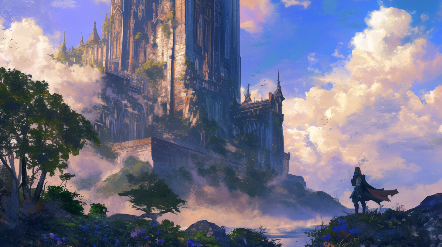 Continuing onwards, they eventually come to the entrance of the castle, which seems even more grand and beautiful than from a distance, with the highest towers reaching a mile or so straight up. Two bears in armor stand guard outside the stairs leading up to the entrance, and they stop them. Thistlethorn can speak with beasts, and understands that they ask if they have an invitation. Thistlethorn says that they don’t, to which they respond “good”, before gesturing inside. They happily follow the instructions, walking up the long staircase, and then opening the door.