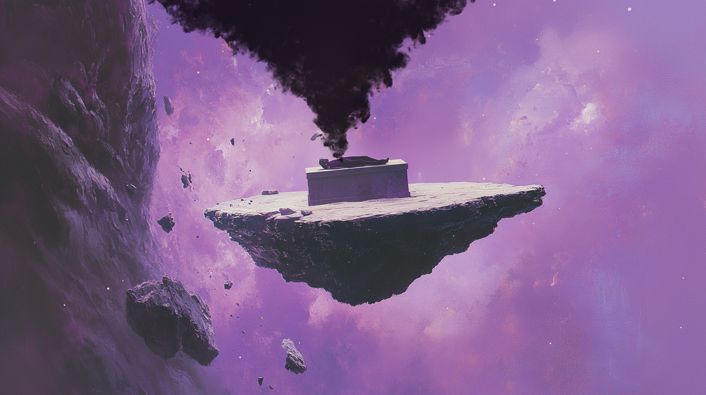 Relic, chugging another potion, braces himself, before putting his hand on the blade, and pulls. The feeling is excruciating, and he can see that his arm is close to disintegrating, but he relents, managing to pull the dagger completely free, before he collapses to the ground, his life force ebbing away. The party senses his fall, and immediately turns towards the island in the sky, where the plume of liquid smoke is dissipating.