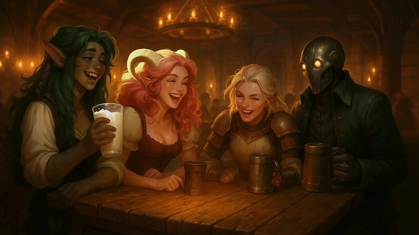 Over the next few days, the party decides to honor their promise to Fie, and travels to Blanc Town. A beautiful city with rivers flowing through it instead of streets, with several bridges connecting the different city blocks. They find their way to a lonely tavern on the outskirts of town. Five people sit scattered around the inn, with a single innkeeper behind the desk. Penny and Thistlethorn, who both have truesight now, can tell that every one of them is a changeling.