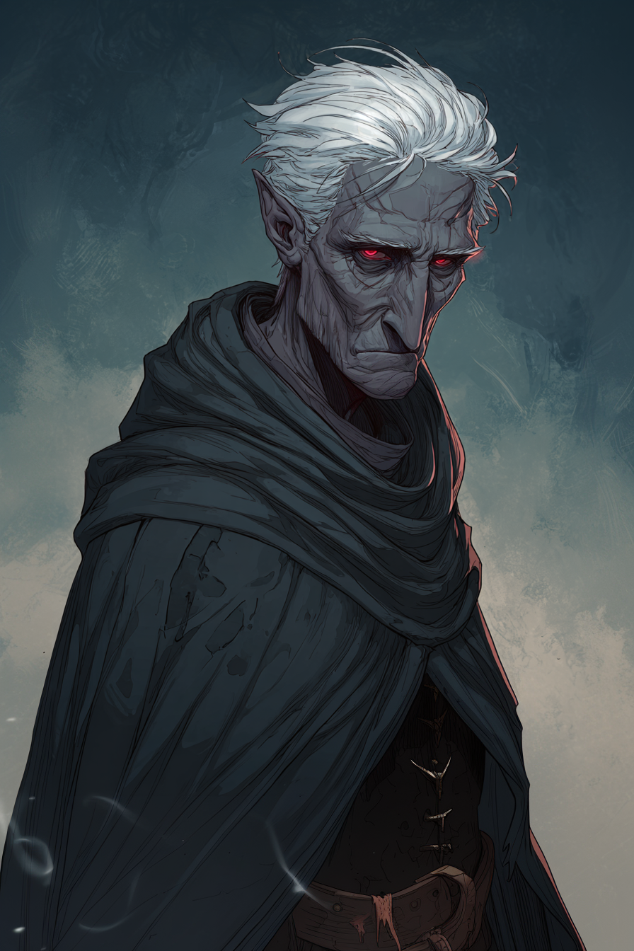 An elderly drow that resides in Nieznane with his familiar Nibblet.