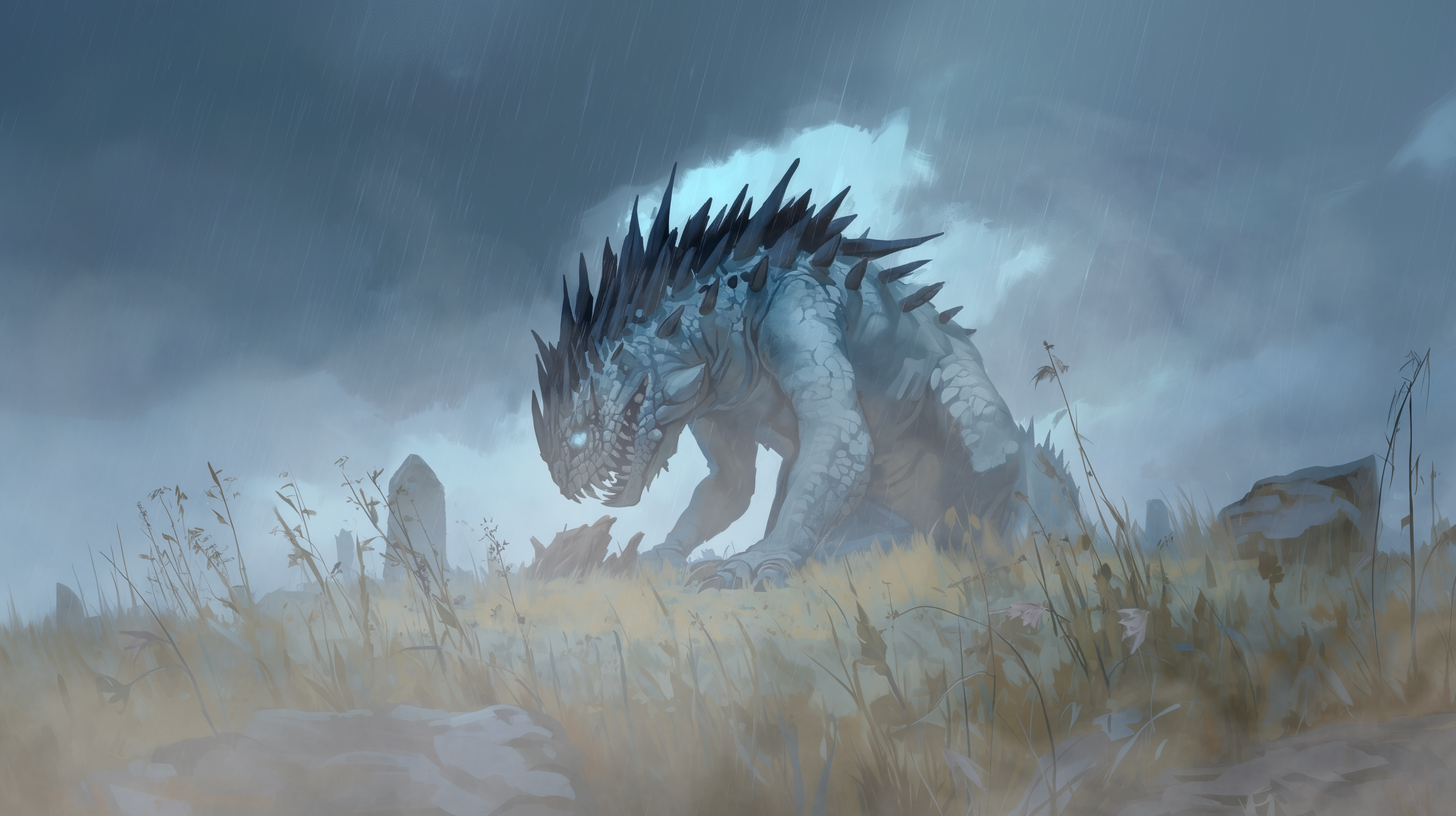 After wandering through the fog for a couple of hours, passing by people who were lucky enough to avoid the basilisk, they suddenly hear a bloodcurdling scream that is suddenly choked off, and several people fleeing as fast as they can towards them. The passing people tell them to run, as there is a monster right behind them. Gaia takes to the skies, while Quill makes an illusion to make herself appear taller, hoping to not have the basilisk meet her eyes. In the fog ahead, Gaia can make out a massive shape eating something on the ground. As it appears to be distracted, they decide to leave the horses behind with Miryks, and sneak forward to catch it off guard.