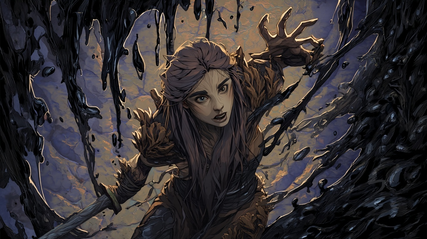 Quill, thinking fast, decides to summon yet another wall of flame as Legion has moved closer to them, cutting it off from its minions, and by extension, food. Gaia is now trapped behind two walls of flame, separating her from the rest of the party, while Miryks is being accosted by several of the minions who are trying to drag her down to the ground to kill her. Legion sends out several waves of tadpoles, some of which makes it through, infecting both Raenerys and Quill.