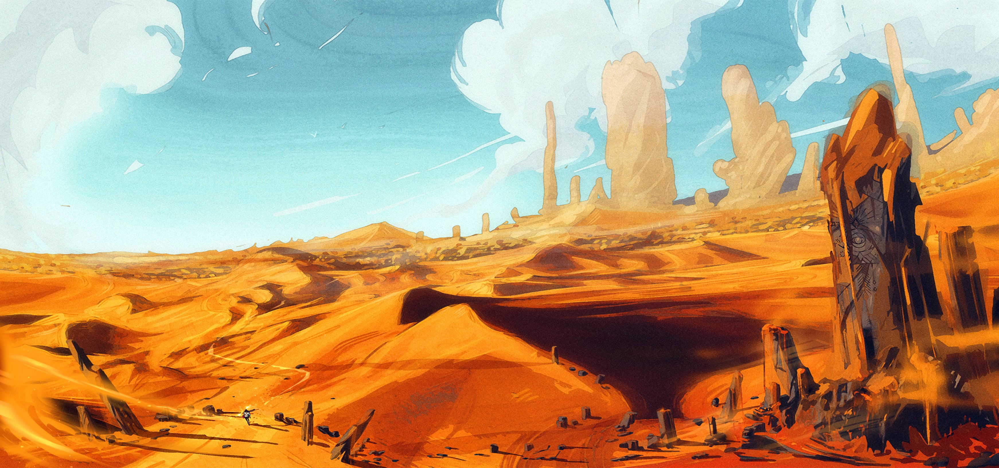 The Sun Temple is a blistering expanse of flat, sun-scorched rock, where temperatures soar to deadly extremes. It is believed to be the site where Serrakhan first confronted the Elementari. Travelers avoid this area, save for those seeking pilgrimage to the ruins of ancient altars dedicated to Helios, the God of Life.