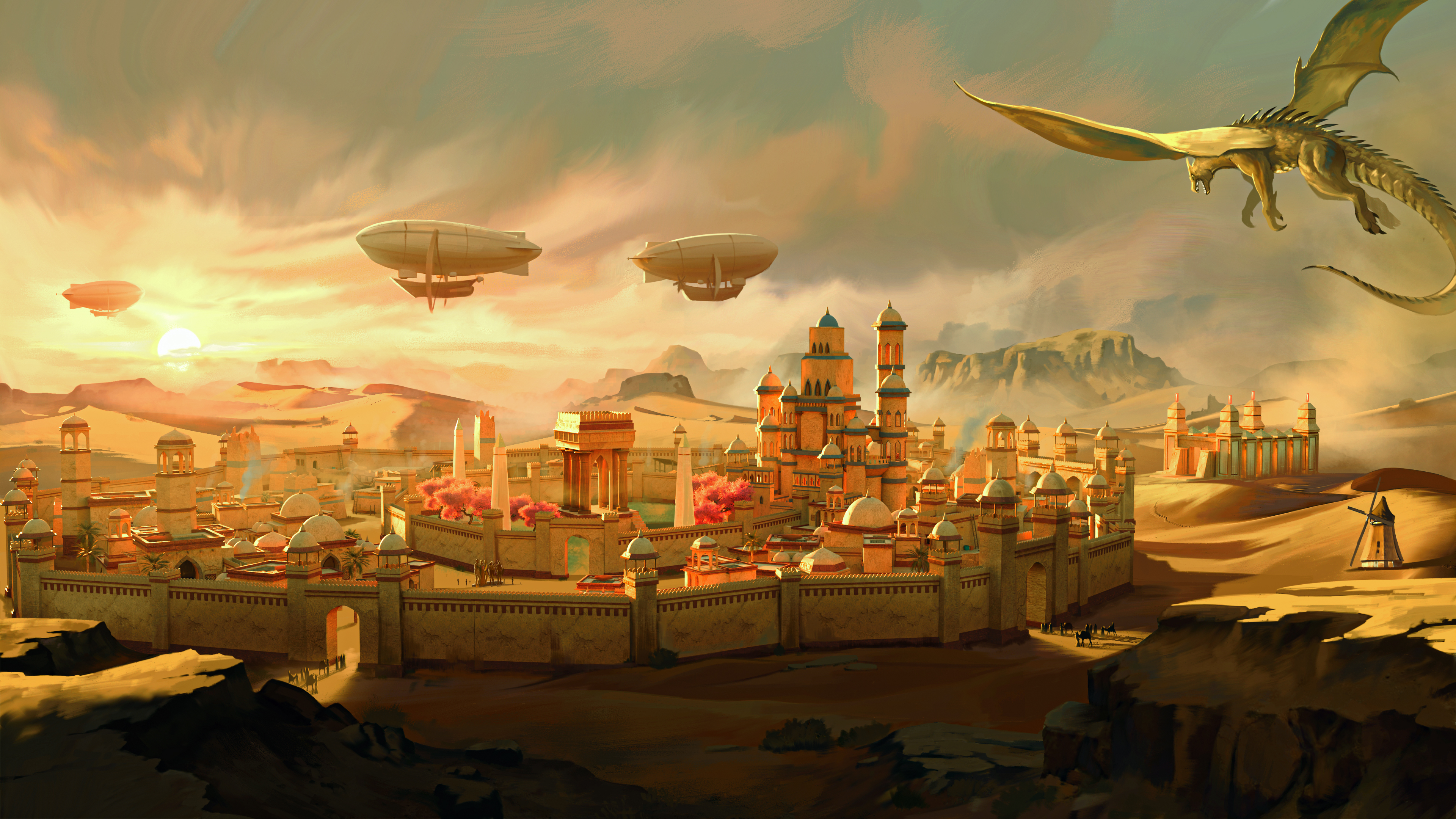 Shariz, the capital of the Serrakhan Sultanate, stands as a testament to both the enduring resilience of its people and the tumultuous history that shaped it. Once a beacon of divine power under the self-proclaimed God of the Sun, Malekith, Shariz was founded when he forcibly united the nomadic tribes of The Sands of Serrakhan under his banner. By presenting himself as an incarnation of the legendary Serrakhan, Malekith deceived the tribes into following his vision of a theocratic empire centered around his dominion.