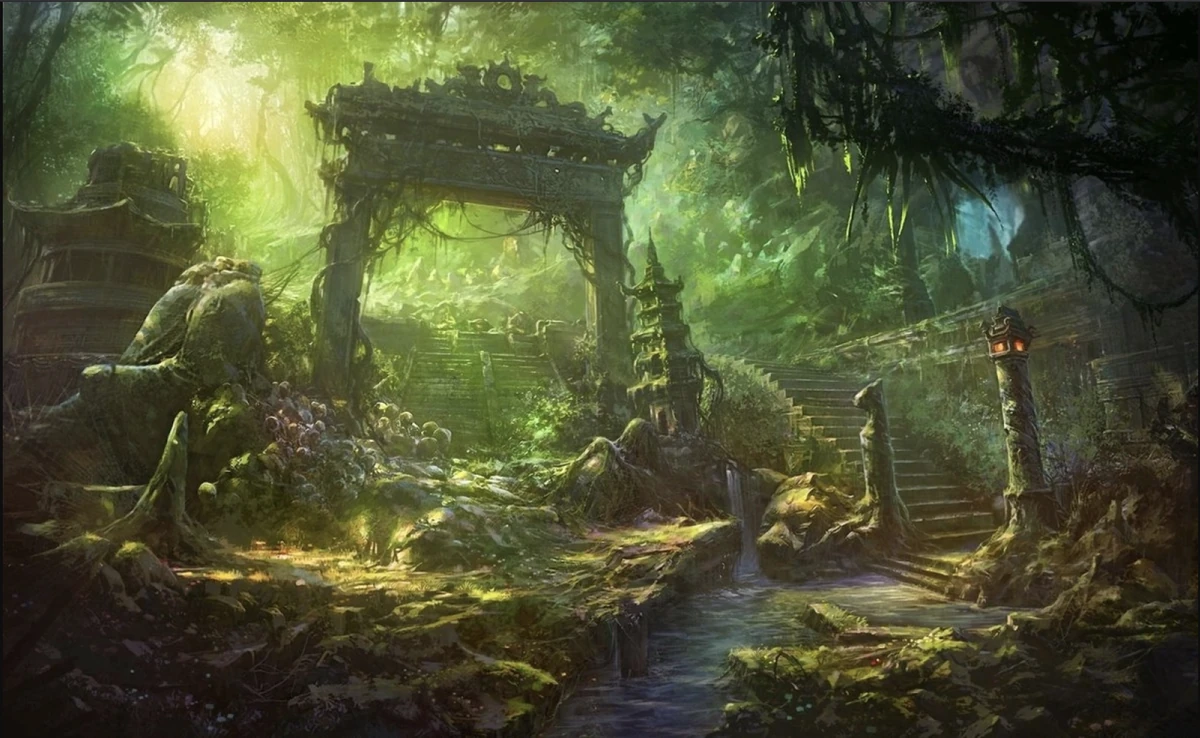 Torbah, once a humble desert settlement on the western fringes of The Sands of Serrakhan, has long since been swallowed by the sprawling, chaotic overgrowth of the Faewylds following the catastrophic Conjunction of the Realms. Once a haven for nomadic gypsies, desert wanderers, and outlaws, Torbah's legacy is now one of eerie silence, shrouded in the creeping vines and vibrant, otherworldly flora of the Faewyld jungle.