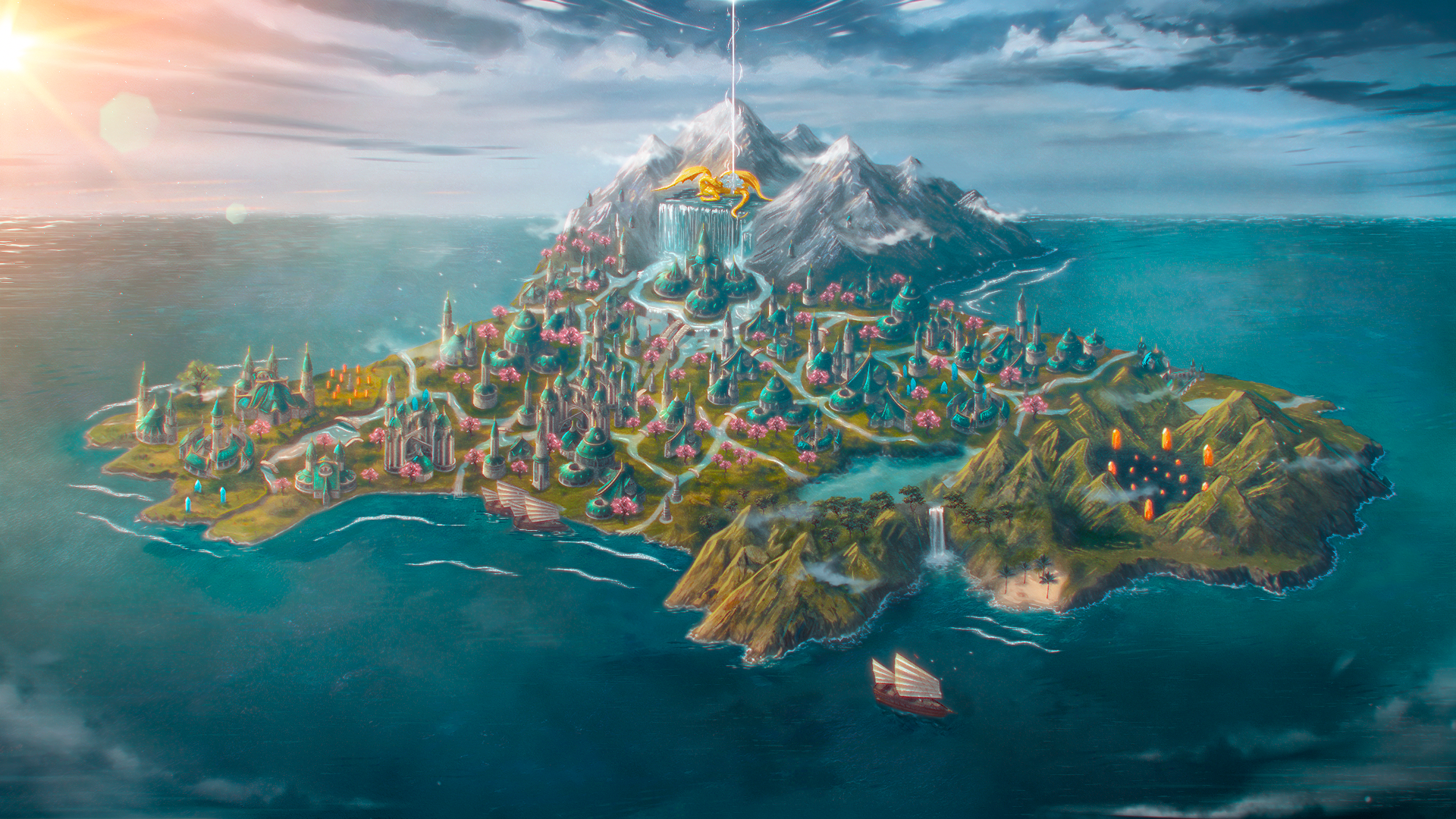 Separating Aerenal from The Sands of Serrakhan, this mystical sea shimmers with ethereal hues and is often cloaked in mist, adding to the island's mystique.