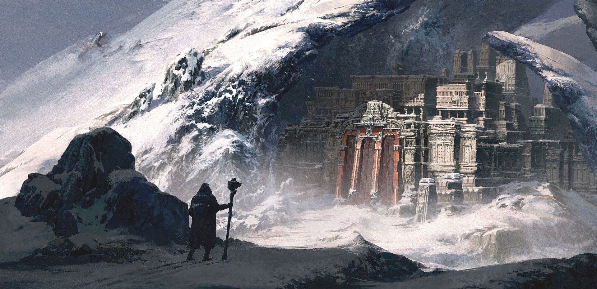 - The Echoing Halls – The deep, winding halls of the temple are naturally formed from the mountain, their surfaces smoothed and shaped by the power of Earth Rifting, creating a labyrinthine sanctuary of learning and meditation.