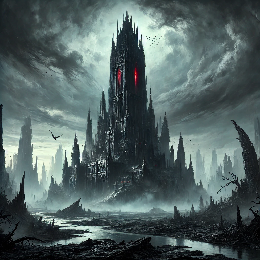 The Arkayne Tower, a towering obsidian spire, was once a fearsome stronghold belonging to Shadowlord Mortis, located on a marshy peninsula beyond the Dread Marshes and south of the City of Evernight in The Netherveil. This towering structure served not only as Mortis’ seat of power but also as his personal laboratory for dark and twisted experiments in necromancy.