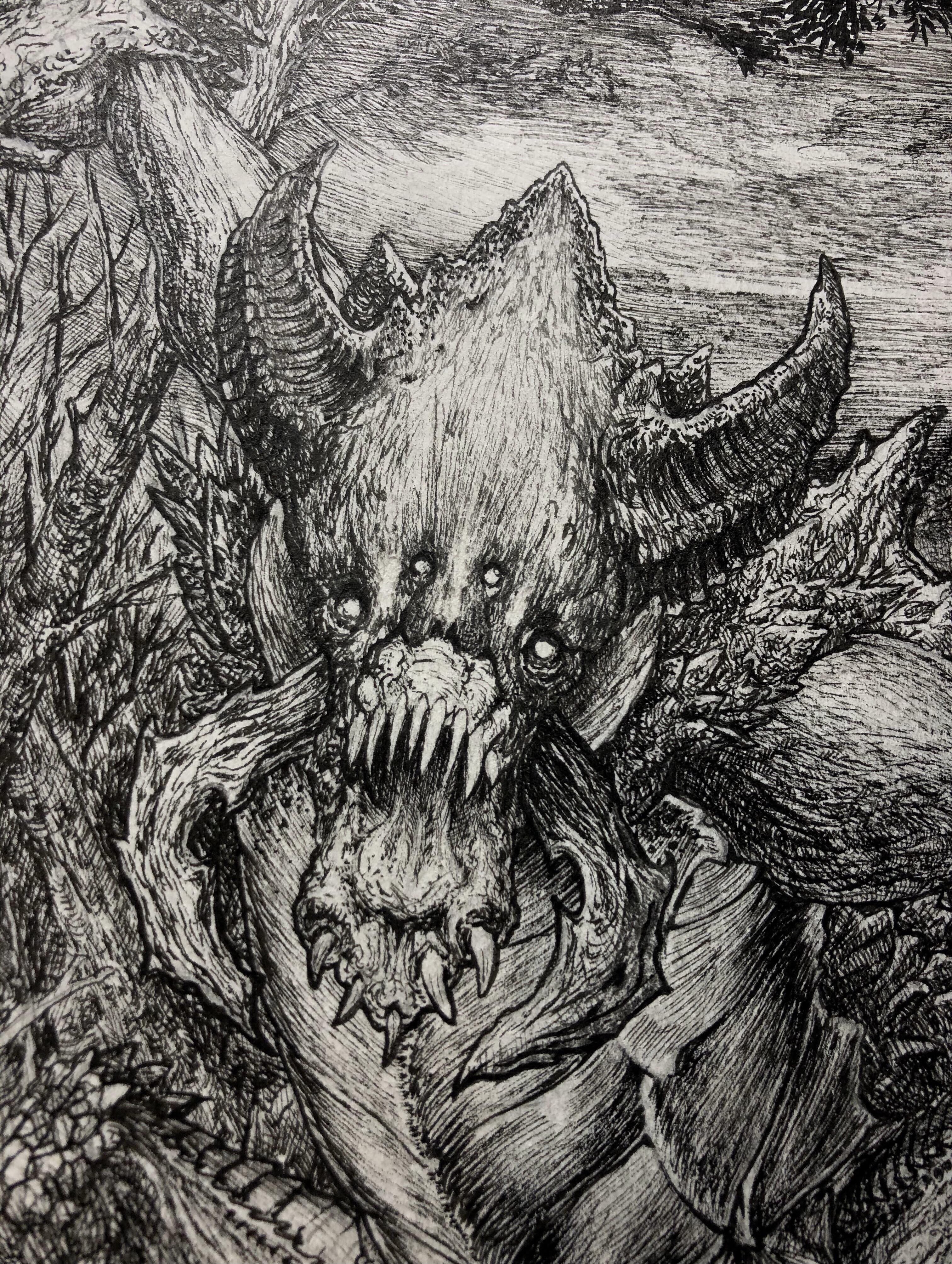 Gharazh'uul, also known as the Grand Zirthakha (or the Great Drakkhid), is the largest and most ancient specimen of the Drakkhid species ever recorded in The Sun Realm. Her titanic form, once believed to be a natural disaster or localized quake by desert nomads, is the last surviving remnant of a once-flourishing hive exterminated during The Great Serpent’s rampant predation in the late Third Age. Surpassing the size of a Sultanate basilica and shielded in a scaled carapace etched with ancient scars, Gharazh'uul is both a wonder of natural majesty and a relic of terrible history.