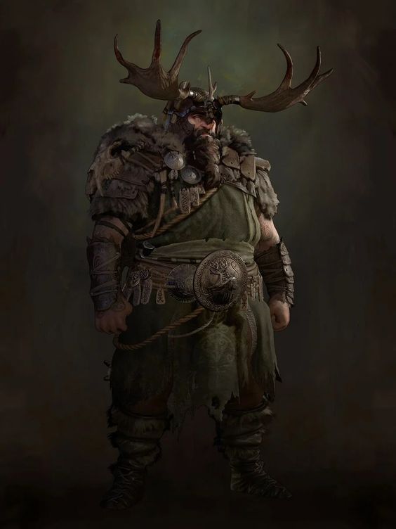 Staaghorn is a colossal, round bellied, Skraelingmen chieftain who presides over the Tribe of The Caribou within the Forests of Frostfall. Having grown up in the tribe, Staaghorn possessed a natural connection with the native Caribou which were hunted by his fellow tribesmen. Oftentimes going overboard in their praise, he had many incidents occur as a young man losing fellow hunters to the trampled hooves of Caribou herds. Despite this reputation, he always returned home with a ripe harvest of herd animal to feed his people with, which later positioned him to become the Chieftain of the tribe. In recent years, Staaghorn has taken keen notice to the dwindling number of Caribou which his people rely upon heavily to survive, and has turned to devilish means to protect the tribes livelihood. Due to the worsening arctic winters in The Vale of Everwinter, Staaghorn has enforced a ritualistic sacrifice to occur monthly of a randomly chosen tribes member, left to the harsh cold of the Forests of Frostfall to appease the Borealis and bring fortune back on the side of his nomadic people.
