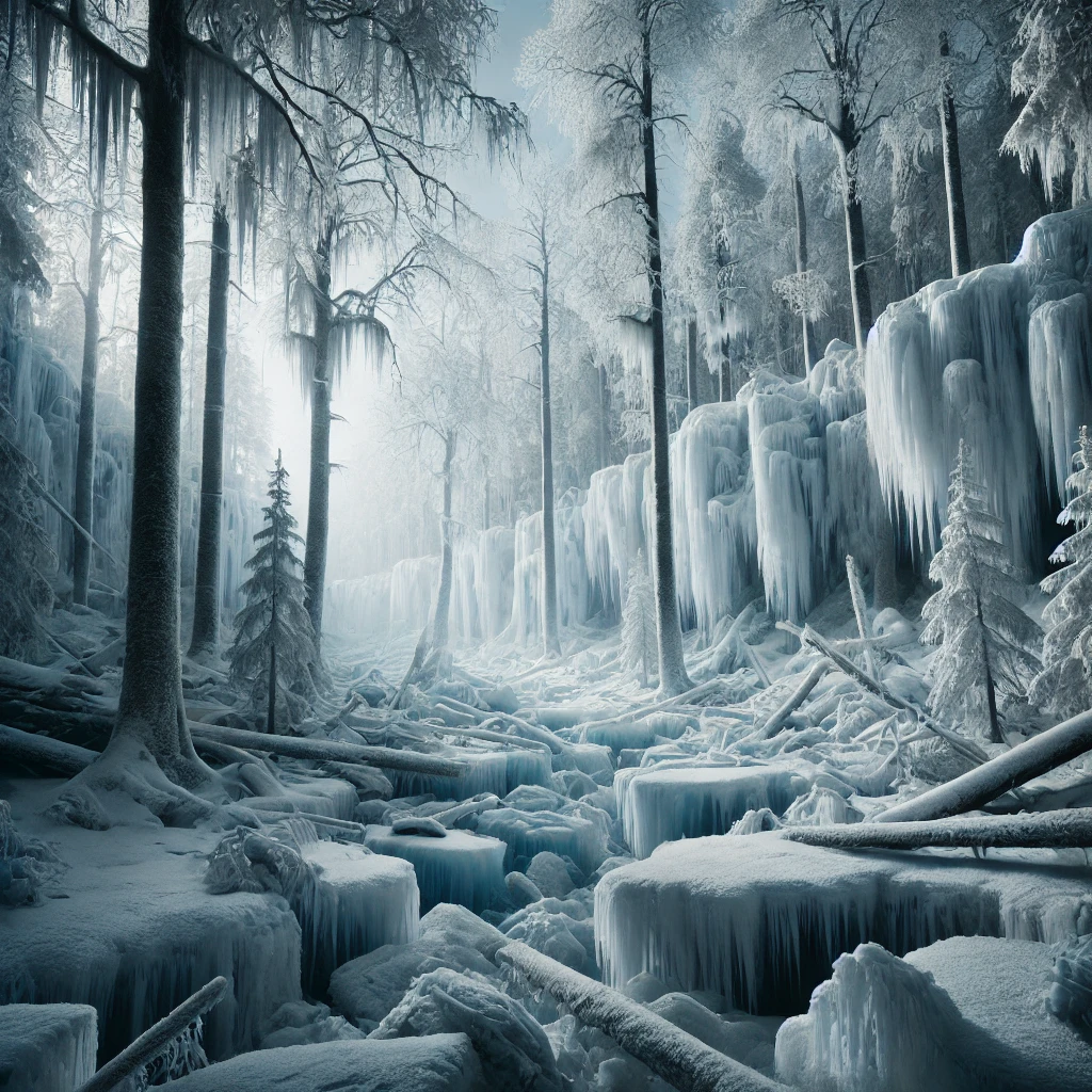 In time, the winds of Borealis, a relentless arctic gale, swept through the forest, enshrouding it in a layer of bi-frost so thick it became an eternal monument to its past. The frost froze not only the trees and the ground but also the memory of what the forest once was—a vibrant cradle of life, now locked in time.