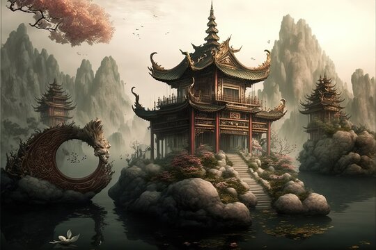 The Temple of the Twin Dragons is a sacred place of worship dedicated to the veneration of the ancient Unknown gods Fujin and Raijin. Located in the heart of the City of Hojo, this breathtaking temple is nestled amidst a serene garden of red cherry blossom trees, providing a tranquil haven for spiritual reflection and contemplation. It is the residence of the revered dragonpriest Hoshiko and serves as a spiritual center for Y'azi Dragonborn who come to pay their respects and offer their devotions to the twin gods.