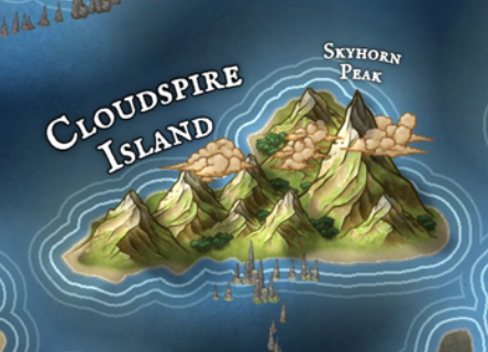 Cloudspire Island, a sight to behold in the northern regions of The Sea Realm, is an awe-inspiring expanse of towering peaks and lush verdure that rise majestically from the surrounding sea to kiss the clouds above. Enveloped in a misty shroud of celestial origin, the island appears like a dreamscape, a fantastical land suspended between the sea and sky, an embodiment of the earth's unyielding grandeur. At the heart of Cloudspire Island sits Skyhorn Peak, the highest of the island's spiraling peaks. Fabled in the annals of ancient lore, Skyhorn Peak is said to hold the vestiges of a forgotten epoch, a time when the primordial forces shaped the face of creation. Its rocky slopes, wreathed in wisps of clouds, guard the remnants of ancient ruins. Many are those who have tried to scale its daunting heights, drawn by the lure of the ancient wisdom said to be inscribed on its weathered stones, yet few have succeeded, and fewer still have returned to tell the tale.