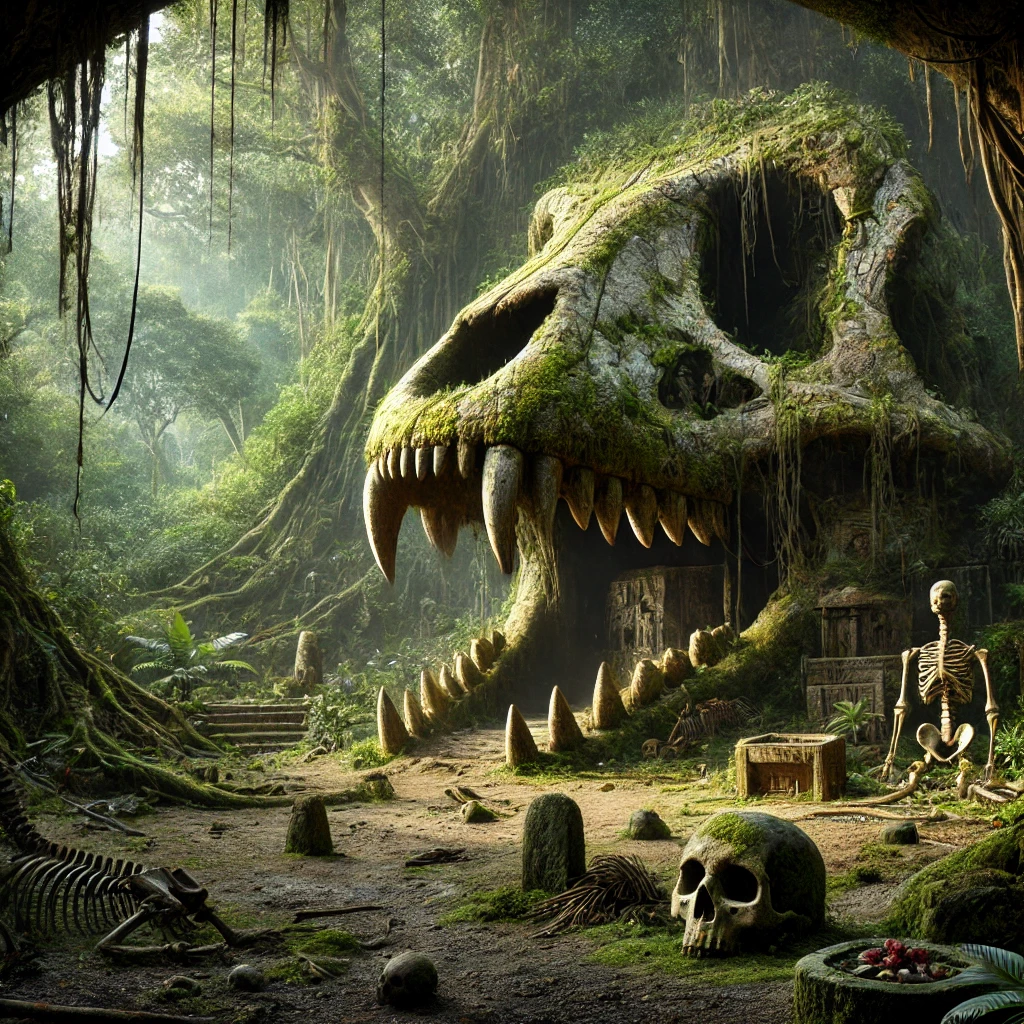 Immersed within the dense foliage of Somerset Island, the Temple of the Old Ones is a sacred and imposing structure, the heart of the Saurus people's ancestral worship. Crafted from the hardy jungle stone, its rough exterior is encrusted with the patina of countless centuries, and its intimidating silhouette is adorned with archaic motifs and effigies depicting their primeval gods and venerated ancestors.