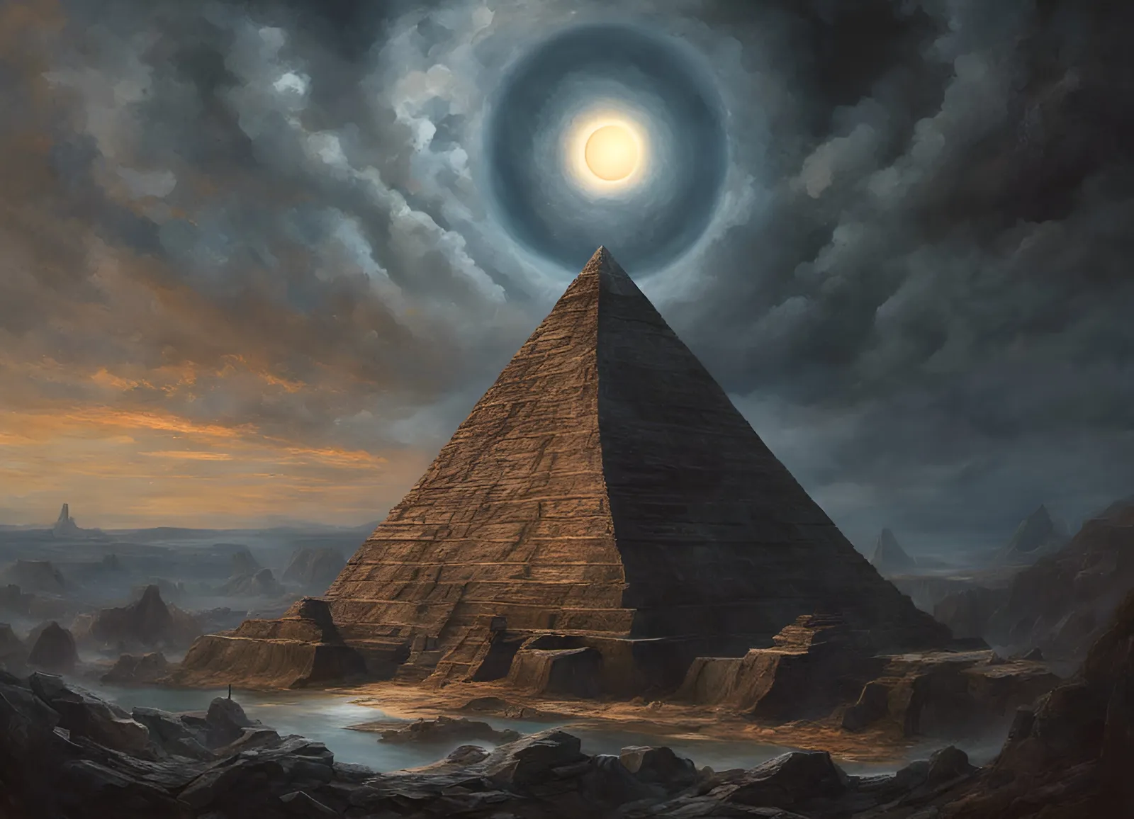 The Tomb of the Sun's Eclipse was an imposing pyramid of monumental proportions, erected during the early days of the Serrakhan Sultanate under the auspices of the Holy Order of the Sun. Conceived as an "offering" of ultimate worship and servitude to the self-proclaimed Sun God, Malekith, its golden-capped apex once gleamed brightly under the relentless sun of the southern dune sea. However, behind its resplendent facade lay a dark and sacrilegious purpose—one of necromantic rituals and grotesque manipulation of life and death.