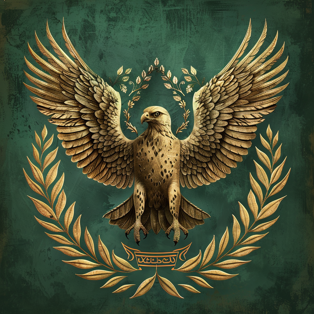 The crest of House Al-Azad features a majestic falcon with outstretched wings, clutching a laurel wreath in its talons, set against a background of emerald green. This emblem symbolizes the house's pursuit of knowledge, wisdom, and excellence, as well as its commitment to scholarly endeavors and diplomatic achievements.
