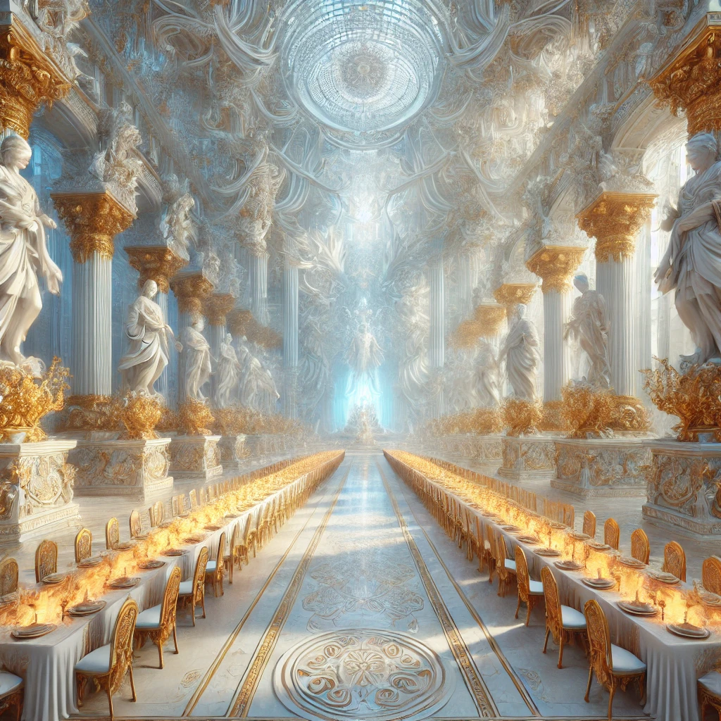 In appearance, The Celestial Citadel is a gleaming palace of white marble, radiant crystal, and gold, soaring high above the verdant groves and golden rivers of Helion. Bathed in eternal light, the citadel’s towers seem to reach into the heavens themselves. Its halls are adorned with statues of ancient heroes and gods, shimmering with divine energy that shifts and pulses with the will of the gods who dwell within.