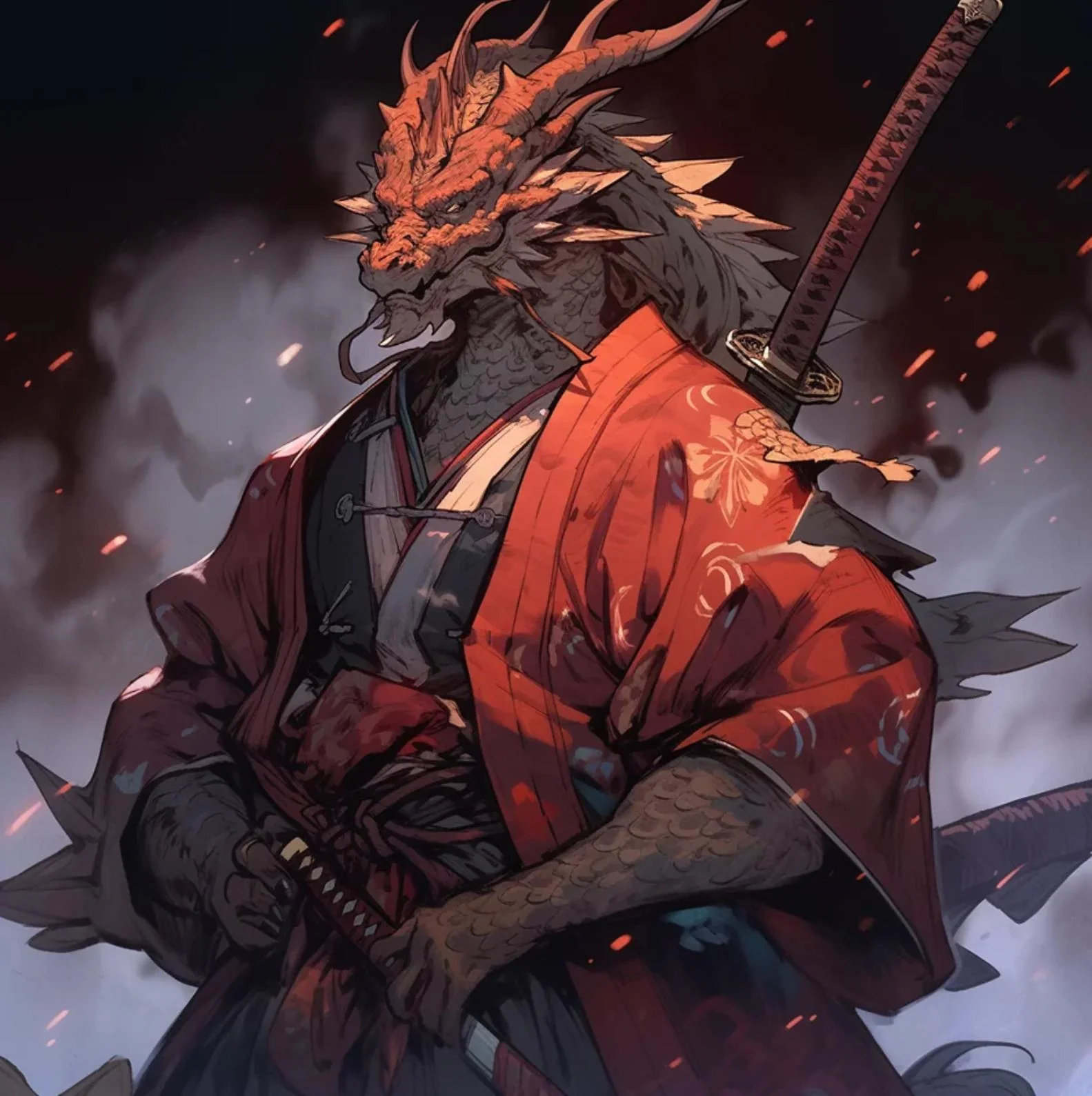 Masaru Hayashi, known as the Dragon of the West, was the first Warrior Monk of Raijin and a pivotal figure in the founding of the Y’azi Empire's martial legacy. A red-scaled dragonborn of immense strength and fiery resolve, Masaru wielded the divine katana Arashi no Ikari (Storm's Fury), a blade crackling with the power of lightning. His contributions to the empire’s history, the founding of the Order of the Jade Dragon, and his ultimate sacrifice in the battle against the Tides of Khaos have immortalized him as a legendary figure.
