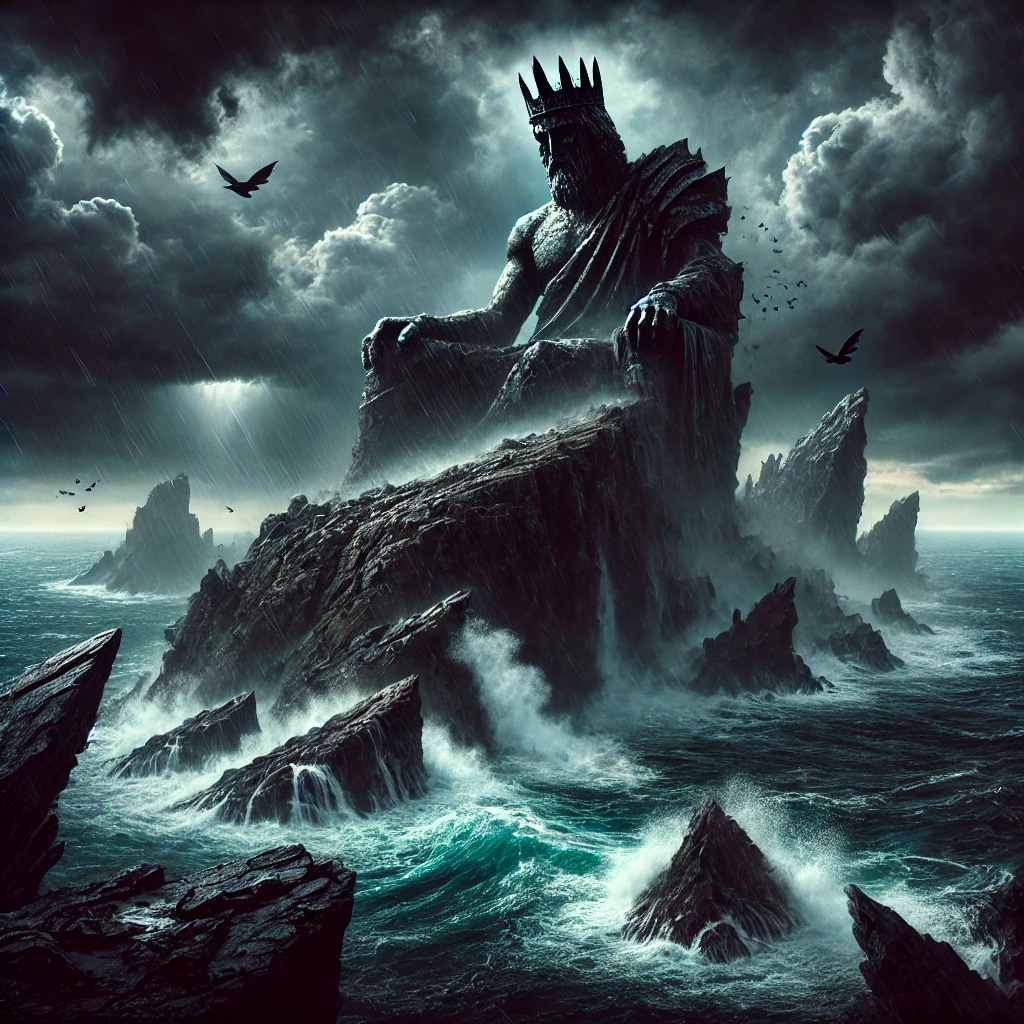 In an effort to preserve his legacy, a grand statue of Athelstan was erected at the tip of the peninsula, standing vigil over the endless horizon he once sought to conquer. However, fate would not allow his story to be rewritten as one of triumph. On the very day of its completion, a black bolt of lightning split the sky, striking the statue and shattering it into ruins. Whether this was an act of divine punishment or an omen of his lingering curse remains a mystery, but the message was clear—Athelstan’s folly would not be forgotten.