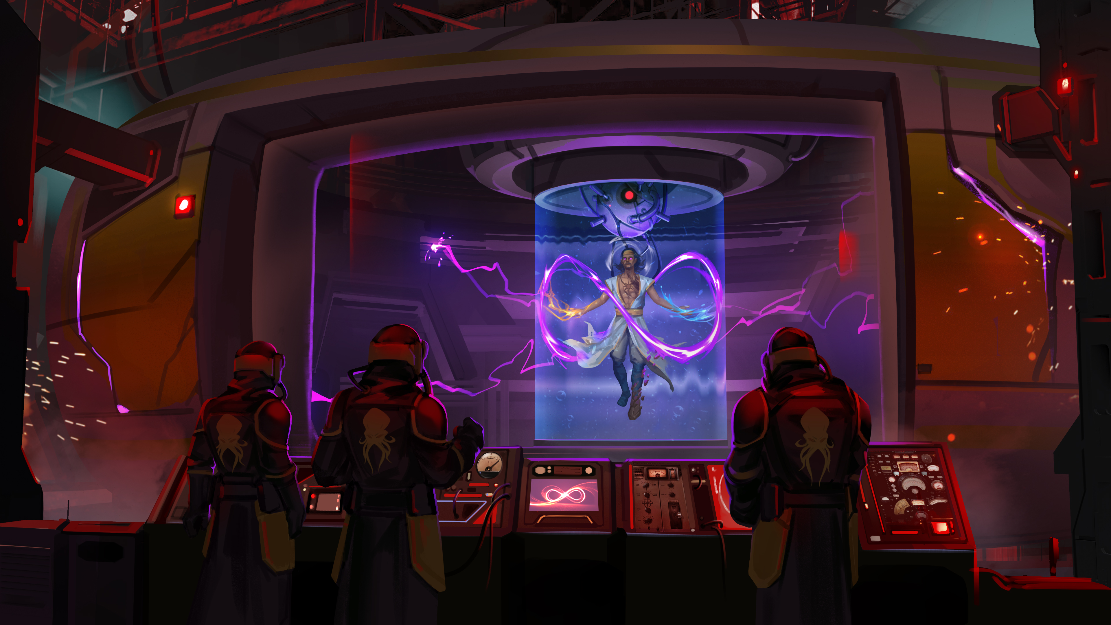 The containment cell before them hums with suppressed, unfathomable power—but it holds.
