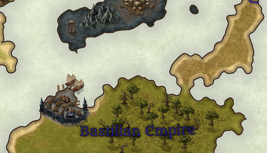 Wide spanning and strong-willed empire to the southern marshlands of Tolria. Weathered by the dashing sea and unforgiving dead marshes, the empire of Bastile has risen from watery graves to imperial dominance after colonizing Nathas as a northern seat of power to their spreading empire. Ruled by the lineage of Iron emperors sitting atop the coveted mithral throne, the empire has ruled strongly for centuries.